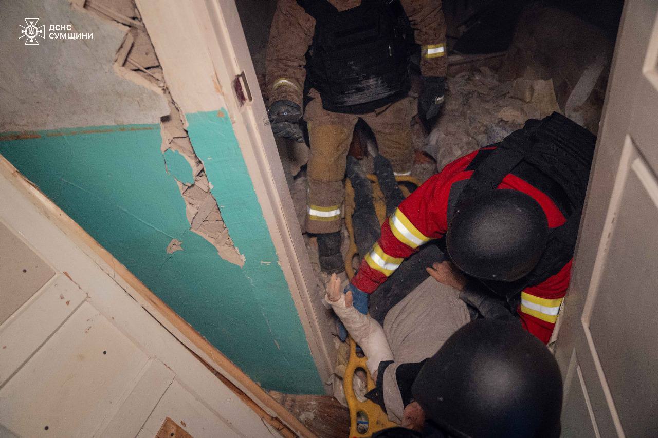 За даними ДСНС України, рятувальники деблокували двох постраждалих зі зруйнованого будинку та передали їх медикам. Також внаслідок російського удару пошкоджені 12 багатоповерхових та 5 приватних житлових будинків, магазин та 3 автомобілі.