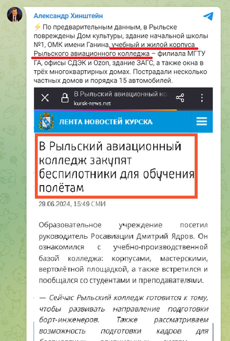Водночас російський телеграм-канал Shot стверджує, що виявлені в Рильську уламки свідчать про те, що місто нібито атакували з американської РСЗВ HIMARS.