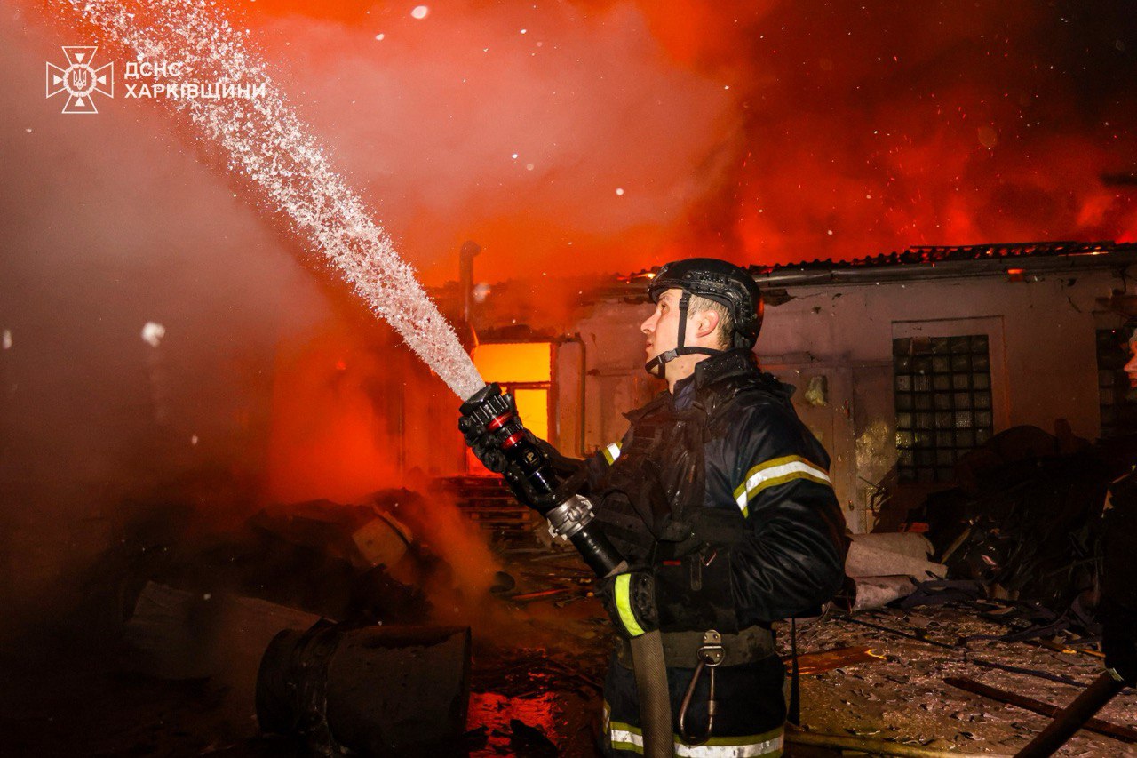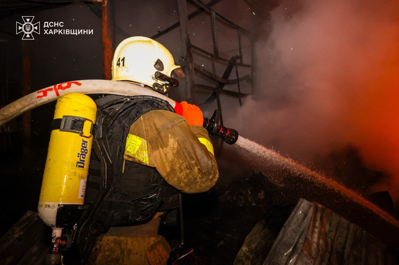 Ліквідовано масштабну пожежу, спричинену ворожим ударом на цивільному підприємстві у Харкові. ФОТОрепортаж