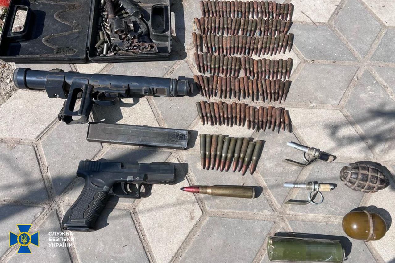 Під час обшуку у фігуранта вилучено мобільний телефон із доказами роботи на РФ. Також у нього виявлено зброю та боєприпаси, які він вивозив з районів колишніх боїв за Херсон.