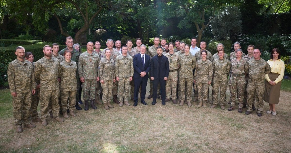 Президент України Володимир Зеленський разом із прем’єр-міністром Великої Британії Кіром Стармером зустрівся з українськими воїнами, які проходять підготовку та навчання у Сполученому Королівстві.