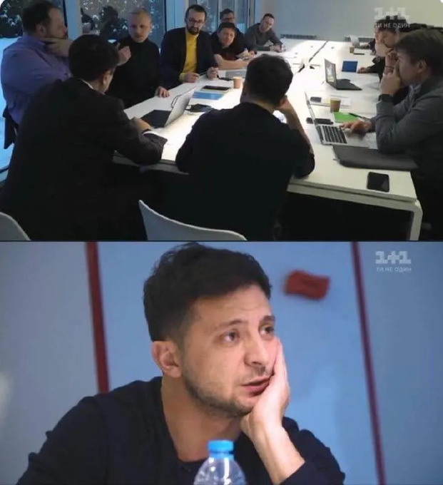 І сидів Зеленський в оточенні молодих політиків, молов всякий абирвалг про 6% для айтішніков і грушу, яку не можна трусити, а поруч сиділи всякі навколополітичні проходімци і кивали на маячню гривами.