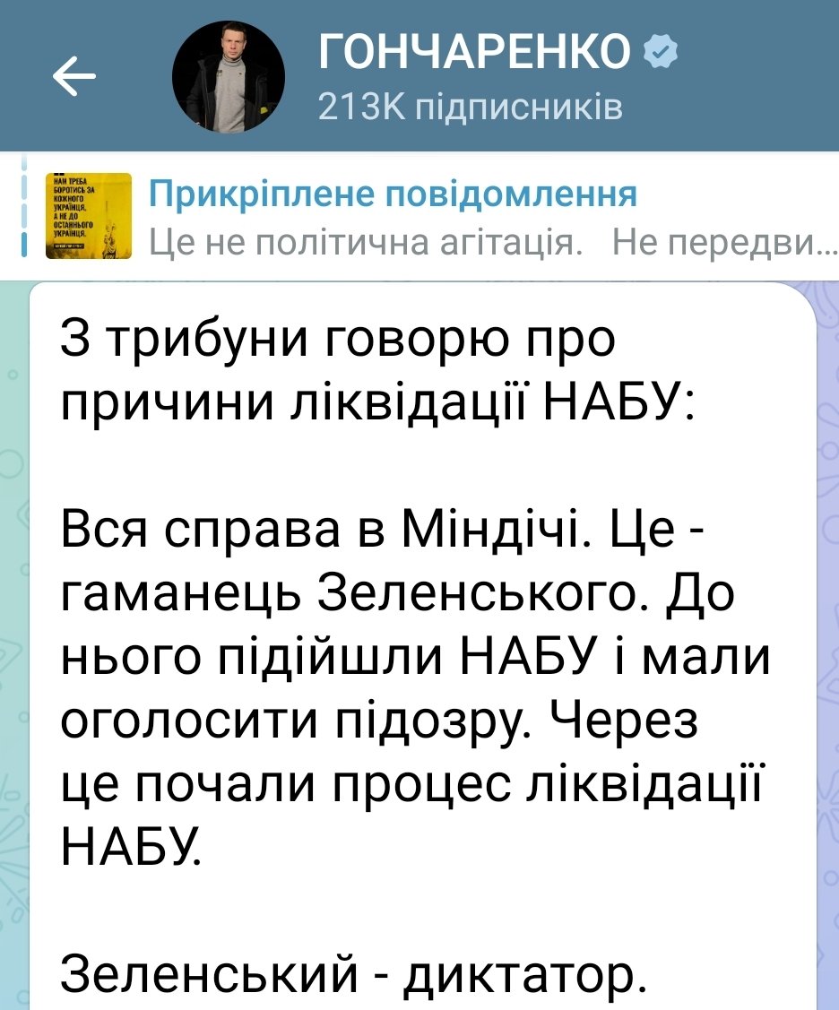 Именно поэтому не могу без смеха читать речи Гончаренко, рассказывающего о том, что все это происходит потому, что НАБУ вышла на «кошелек» найвэлычнийшего и планировала его задержать и допросить. Вдумаемся в саму формулировку этой истории. НАБУ ничего не делала долгие годы, а тут у нее хватило духу замахнуться на такие фигуры? А что же Ермака с его братом не упаковали за продажу должностей? Кишка тонка, а на кошелек зимленского кишки хватило? В моем возрасте с таких историй даже не смеются.