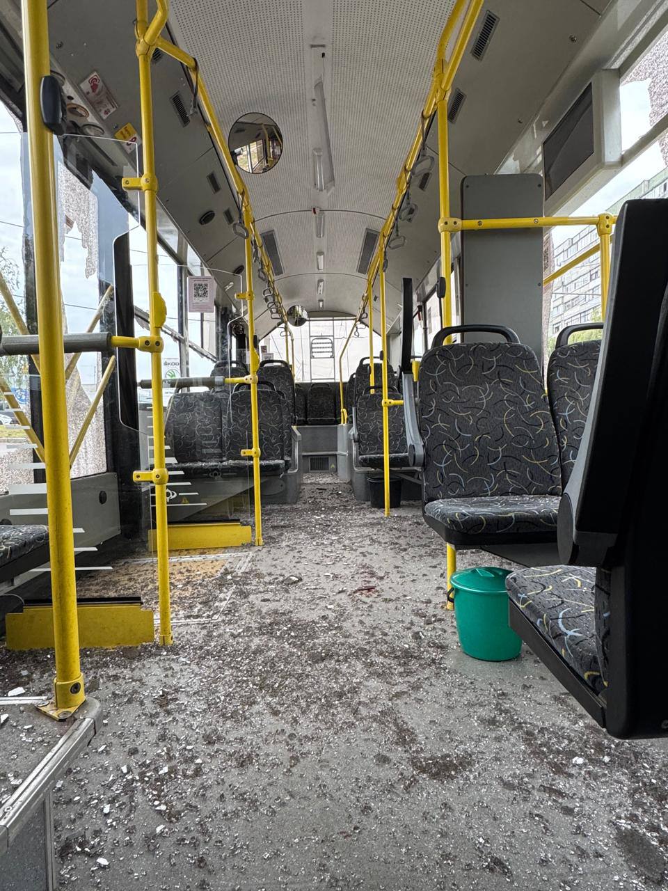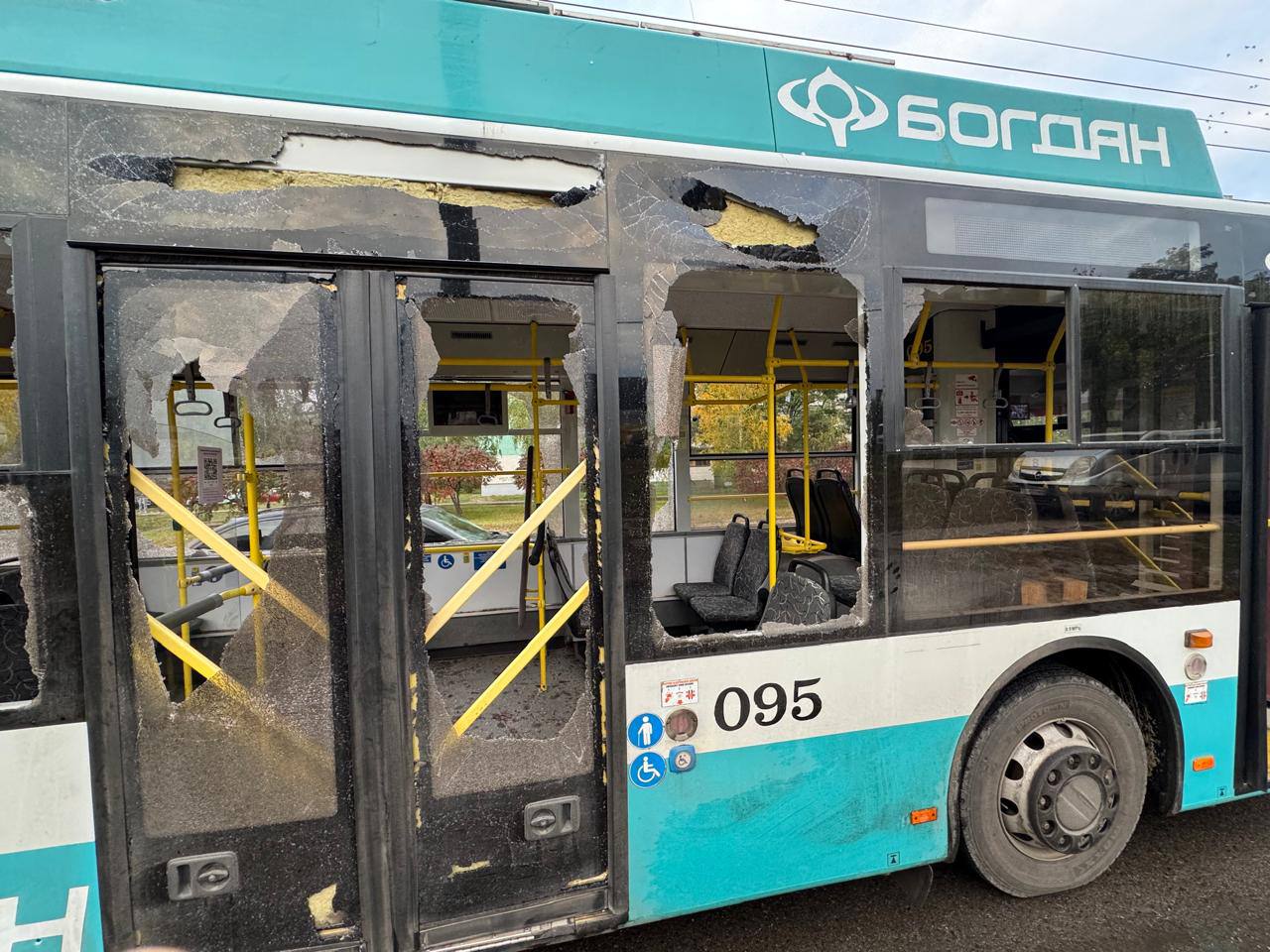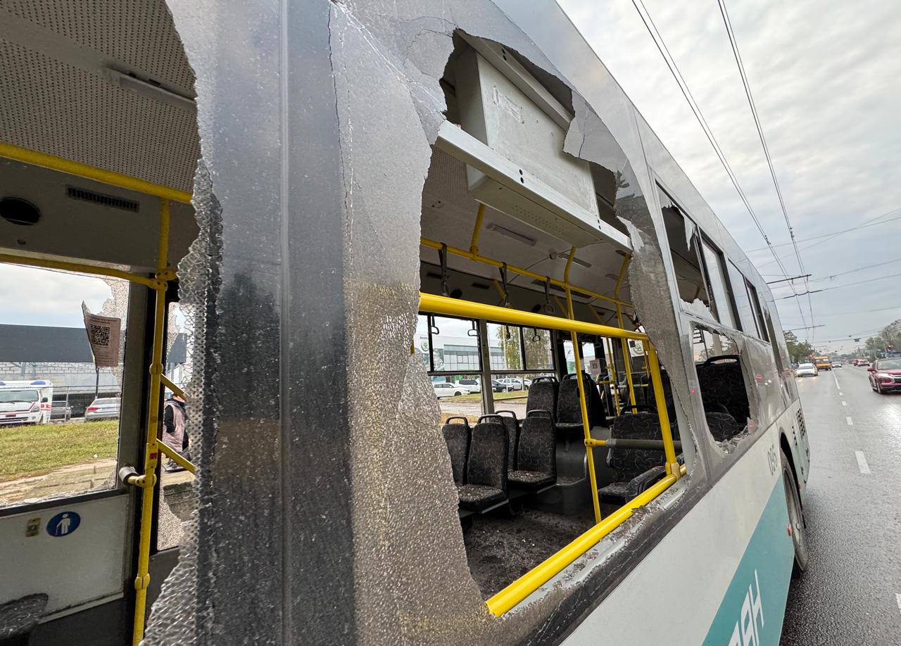 Крім того, в епіцентрі вибухів опинився тролейбус, який рухався за маршрутом №10А, повідомив в.о. міського голови Артем Кобзар. Унаслідок вибухової хвилі в транспортному засобі вибито 20 вікон та пошкоджено обшивку.