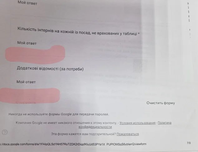 А всі інші надписи на скріні по типу "Никогда не используйте гугл формі для передачи..", "Мой атвет" і т.д. то вже пише браузер тією мовою, якою корстується пані Фіданян