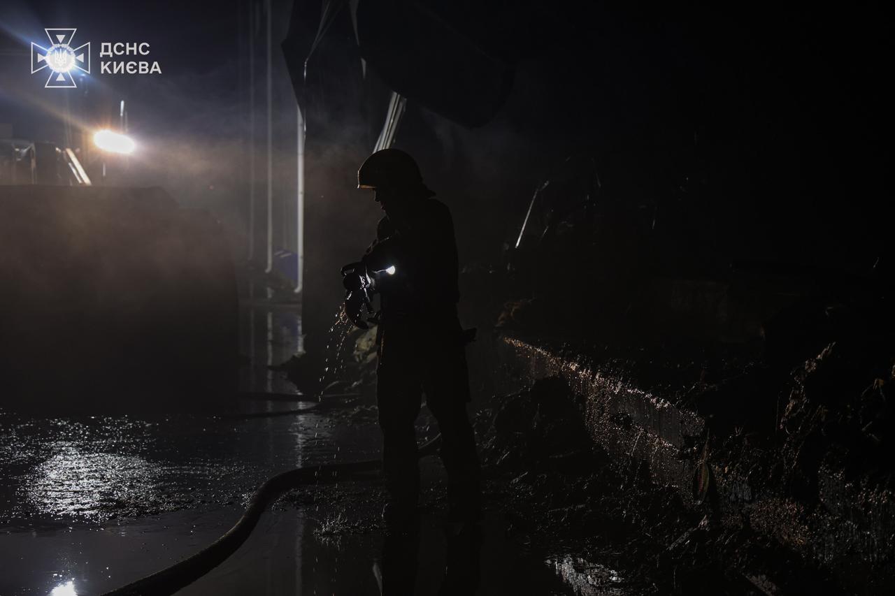 "Київ: станом на 23:30 пожежі у Деснянському та Дарницькому районах столиці, спричинені російським ударом, повністю ліквідовано", - сказано в повідомленні.