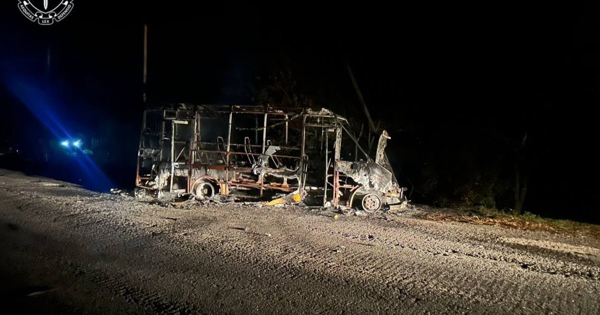 Мікроавтобус, який рухався у бік Сум, внаслідок атаки згорів ущент.