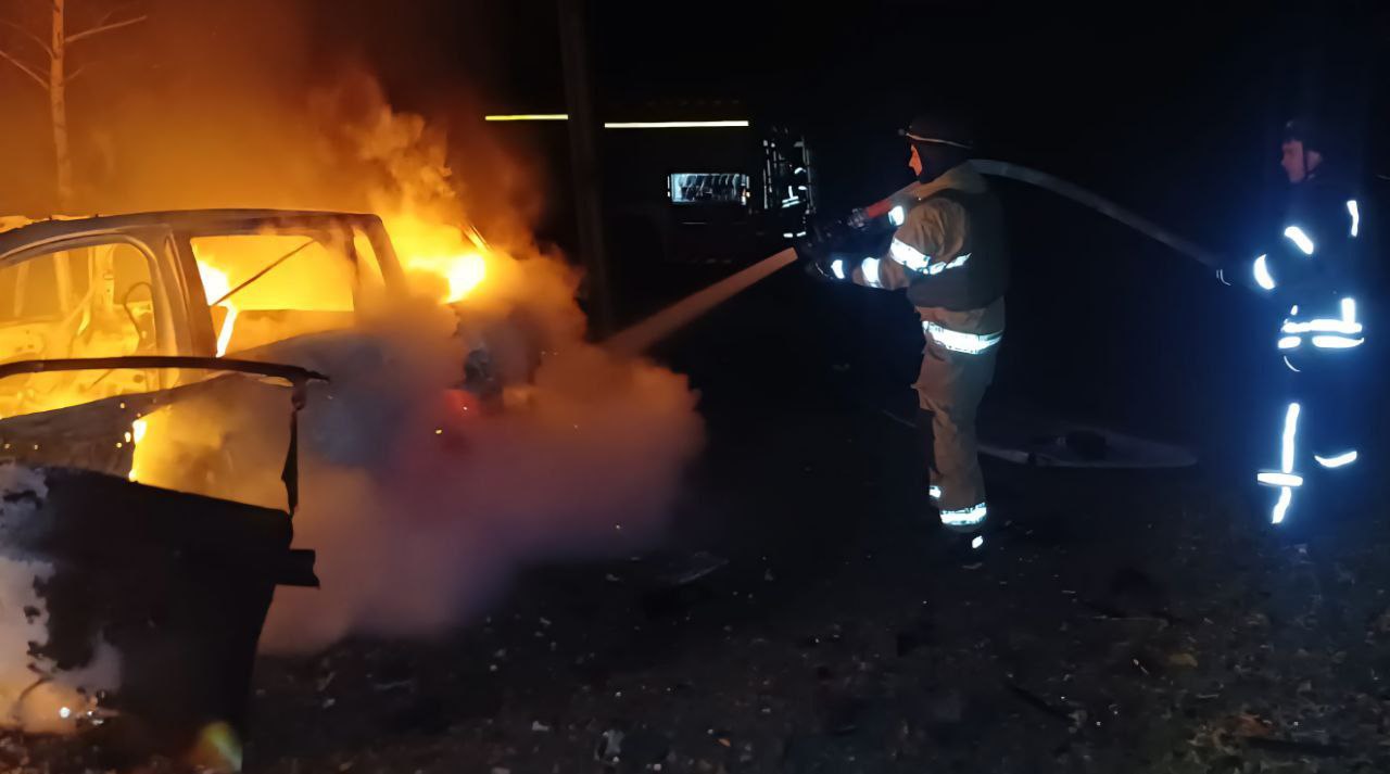 - "Виникла пожежа. Знищене авто, ще 2 - понівечені. Пошкоджені інфраструктура, адмінбудівля, приватний будинок", - йдеться у повідомленні.
