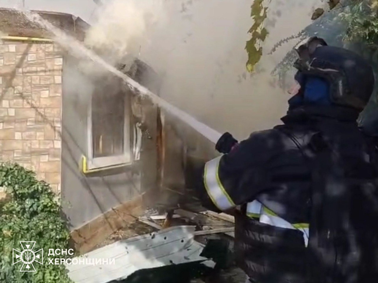 "Сьогодні вдень, після чергового артобстрілу Херсона, в одному з районів міста спалахнув одноповерховий житловий будинок. Підрозділ ДСНС прибув на місце та розпочав гасіння", - йдеться у повідомленні.