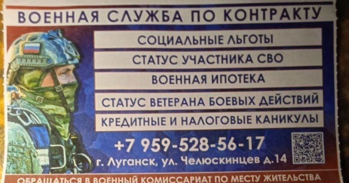 На тимчасово окупованій території Луганської області російська окупаційна влада почала розміщувати агітаційні матеріали із закликами вступати до лав Збройних сил РФ навіть у квитанціях за комунальні послуги.