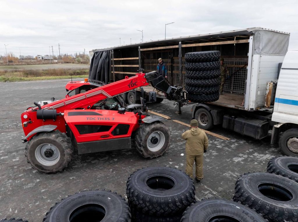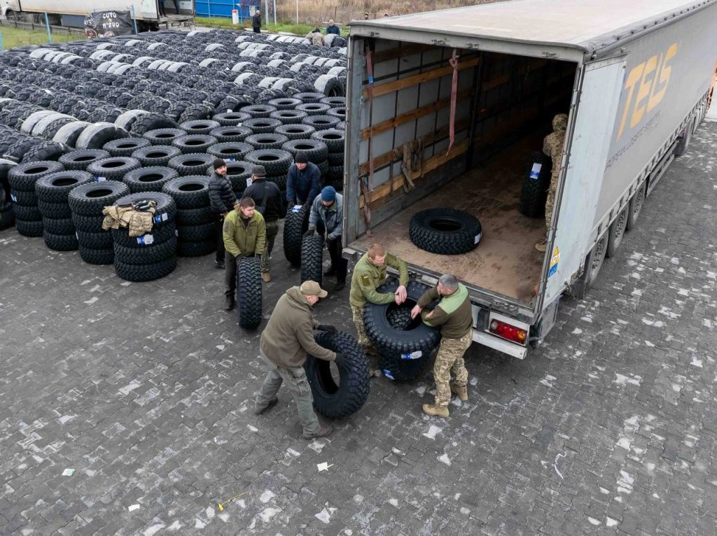 Фронтові бригади отримали дев’ять сотень зимових шин для важкої техніки. ФОТО