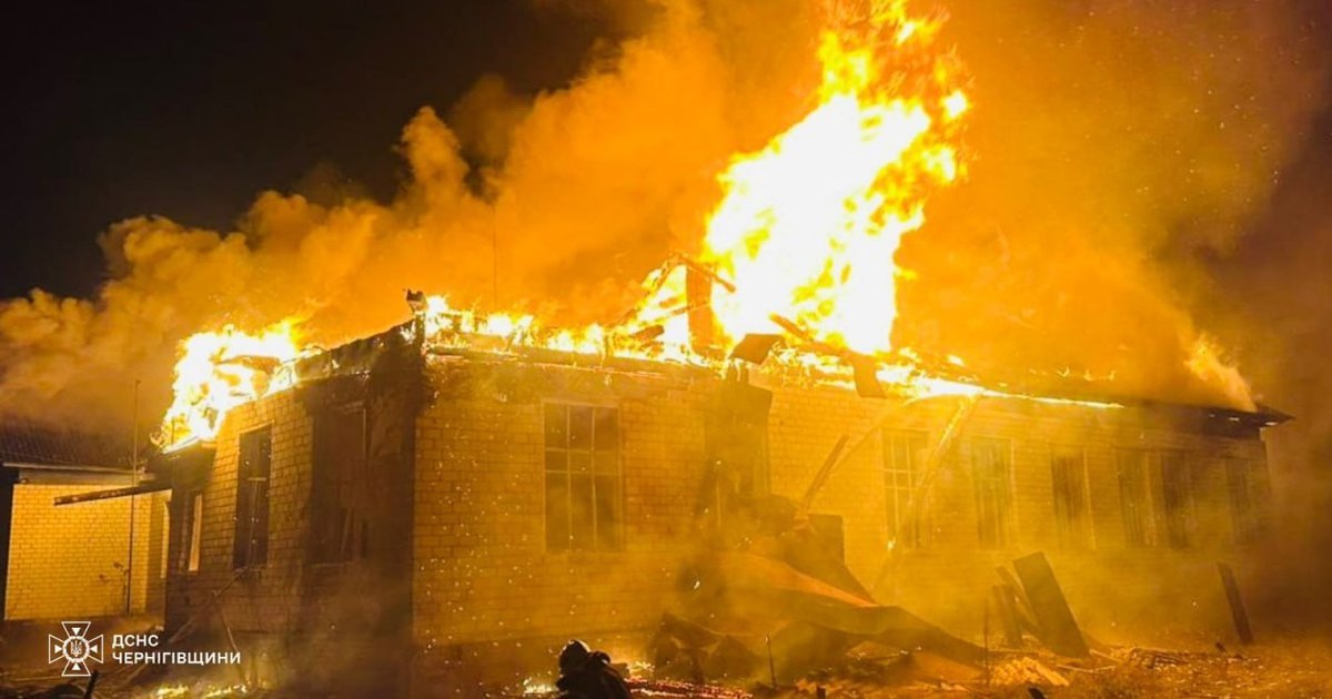 Як зазначається, вночі противник завдав удару по Корюківському району. Унаслідок влучання безпілотника в цивільний об’єкт виникла пожежа.