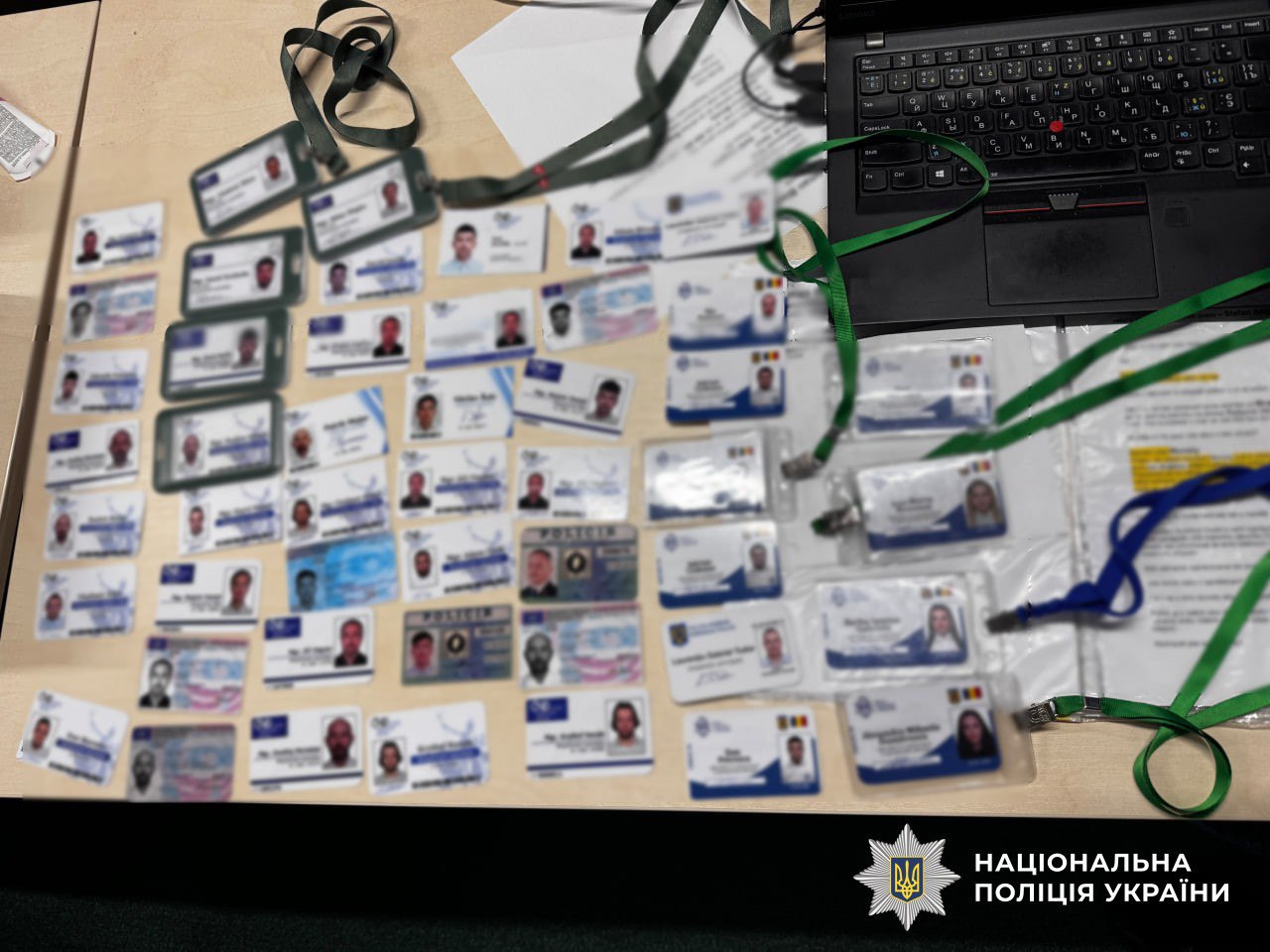 Під час обшуків вилучено сотні ноутбуків і мобільних телефонів, серверне обладнання, носії інформації, підробні посвідчення "працівників банків і поліції іноземних держав", обладнання для створення deepfake, чорнову бухгалтерію, грошові кошти, транспортні засоби, а також зброю і боєприпаси.