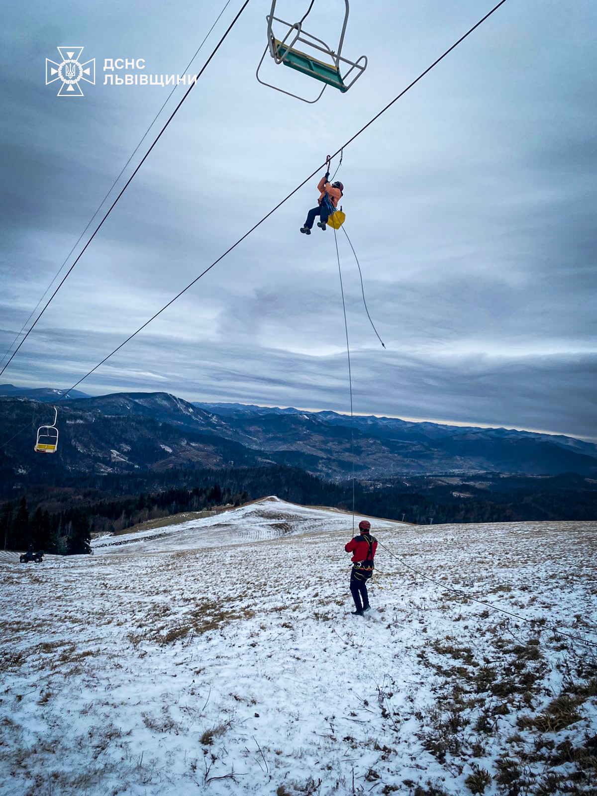 На горі Захар Беркут на Львівщині зупинився підйомник: на висоті залишаються близько 80 пасажирів. ФОТОрепортаж