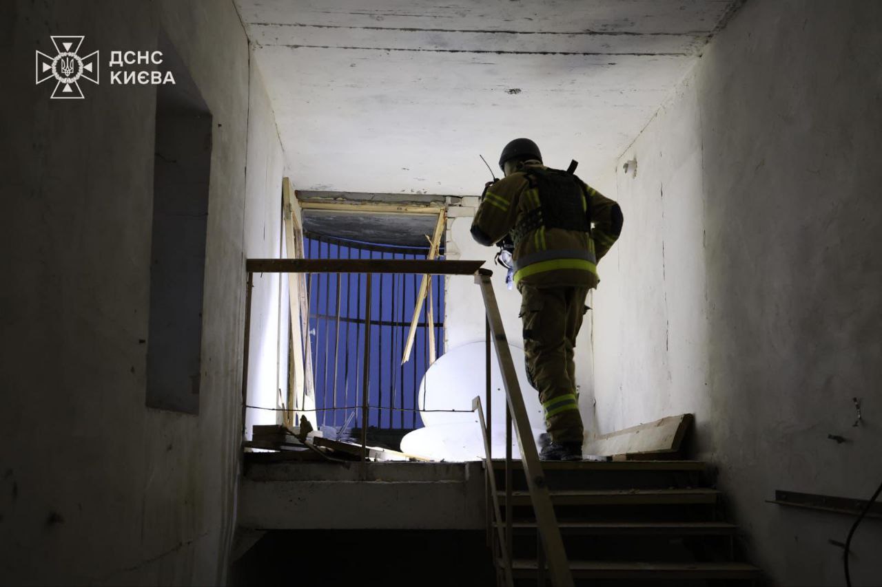 "Влучання сталося на рівні технічного поверху. Зафіксовано руйнування стіни на площі близько 4 кв. м. без подальшого горіння.