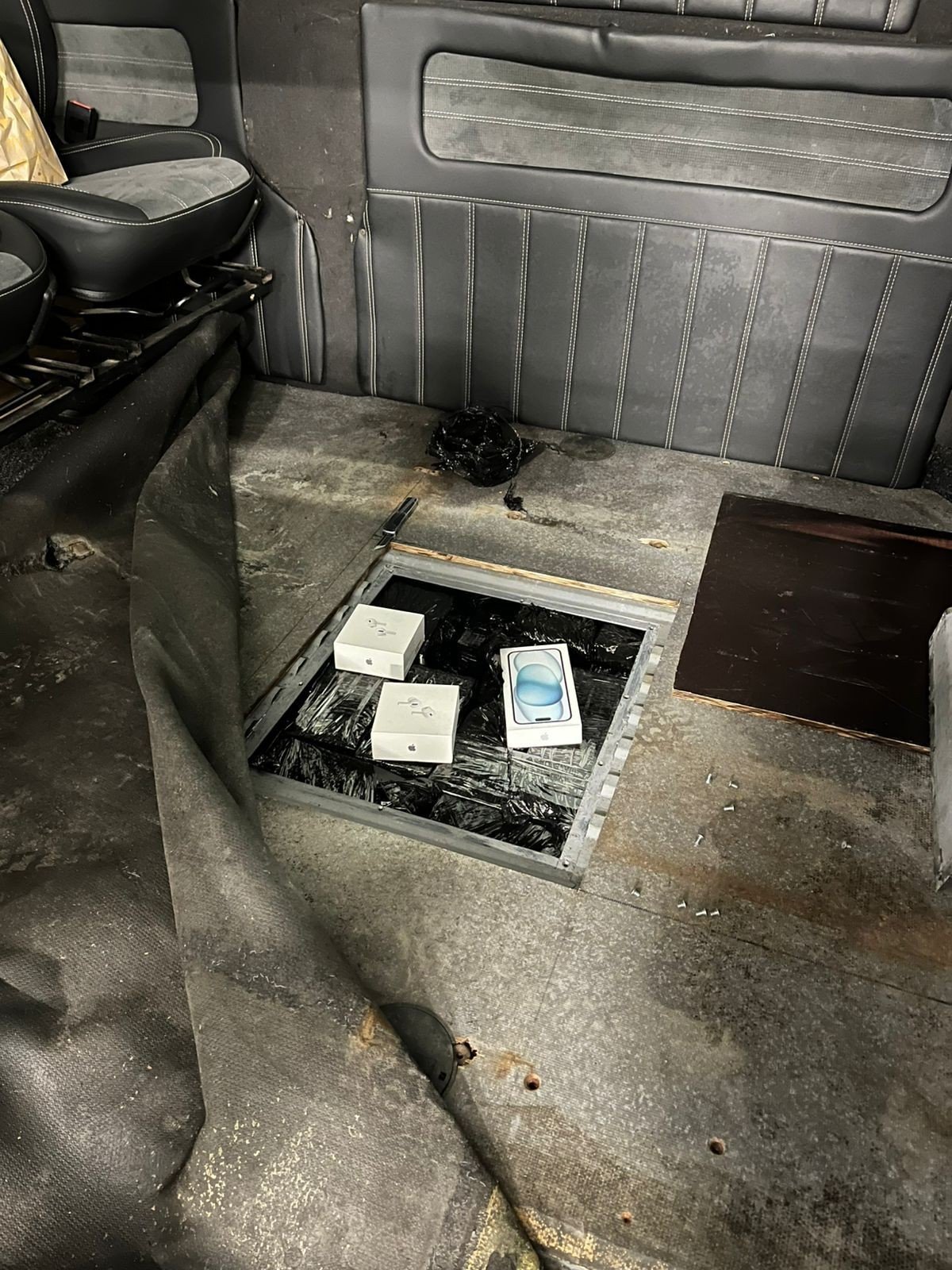 Під час поглибленого огляду прикордонникам довелося демонтувати конструктивні елементи транспортного засобу. У спеціально облаштованому тайнику в днищі мікроавтобуса було виявлено мобільні телефони різних модифікацій - iPhone 15, 16 та 17, смартгодинники та навушники Apple. Загалом із тайника дістали 829 одиниць техніки.