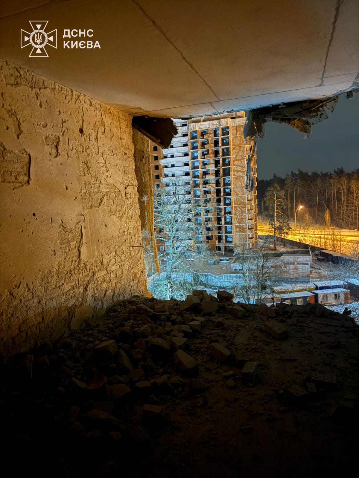 - У Дарницькому районі внаслідок атаки сталося руйнування та займання незаселеної житлової багатоповерхівки. Пожежу ліквідовано.