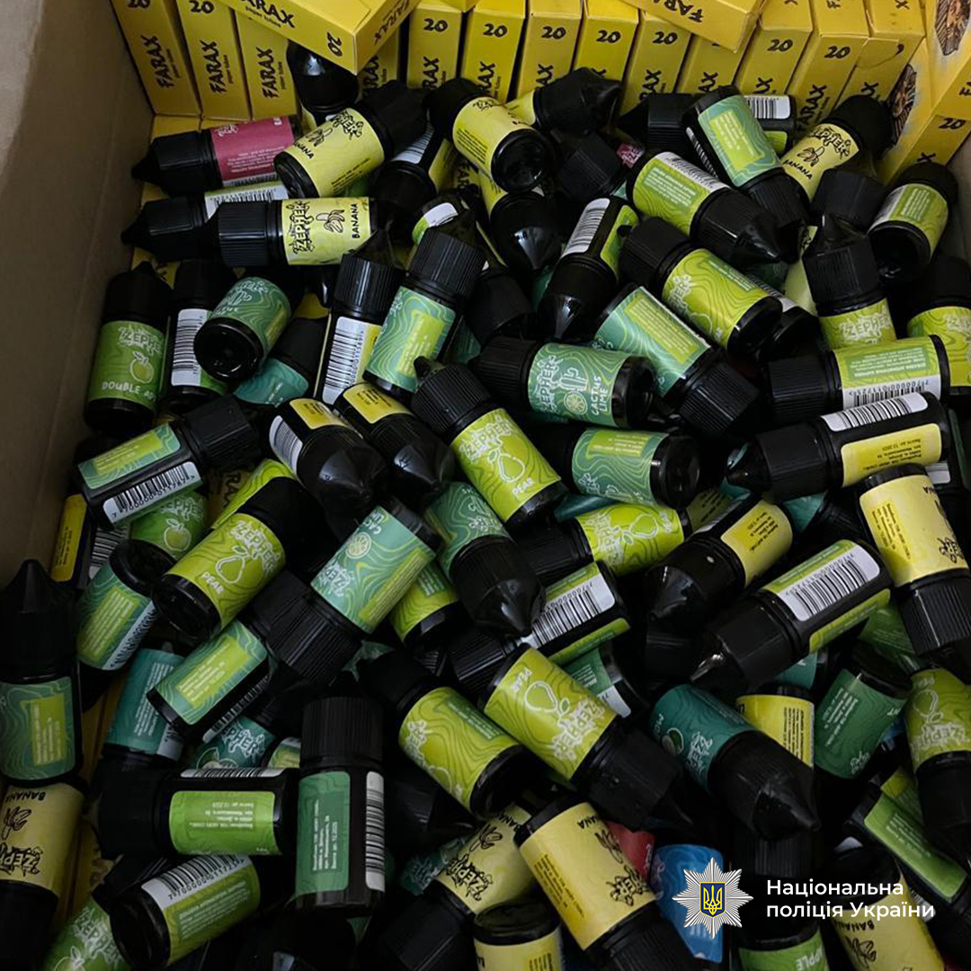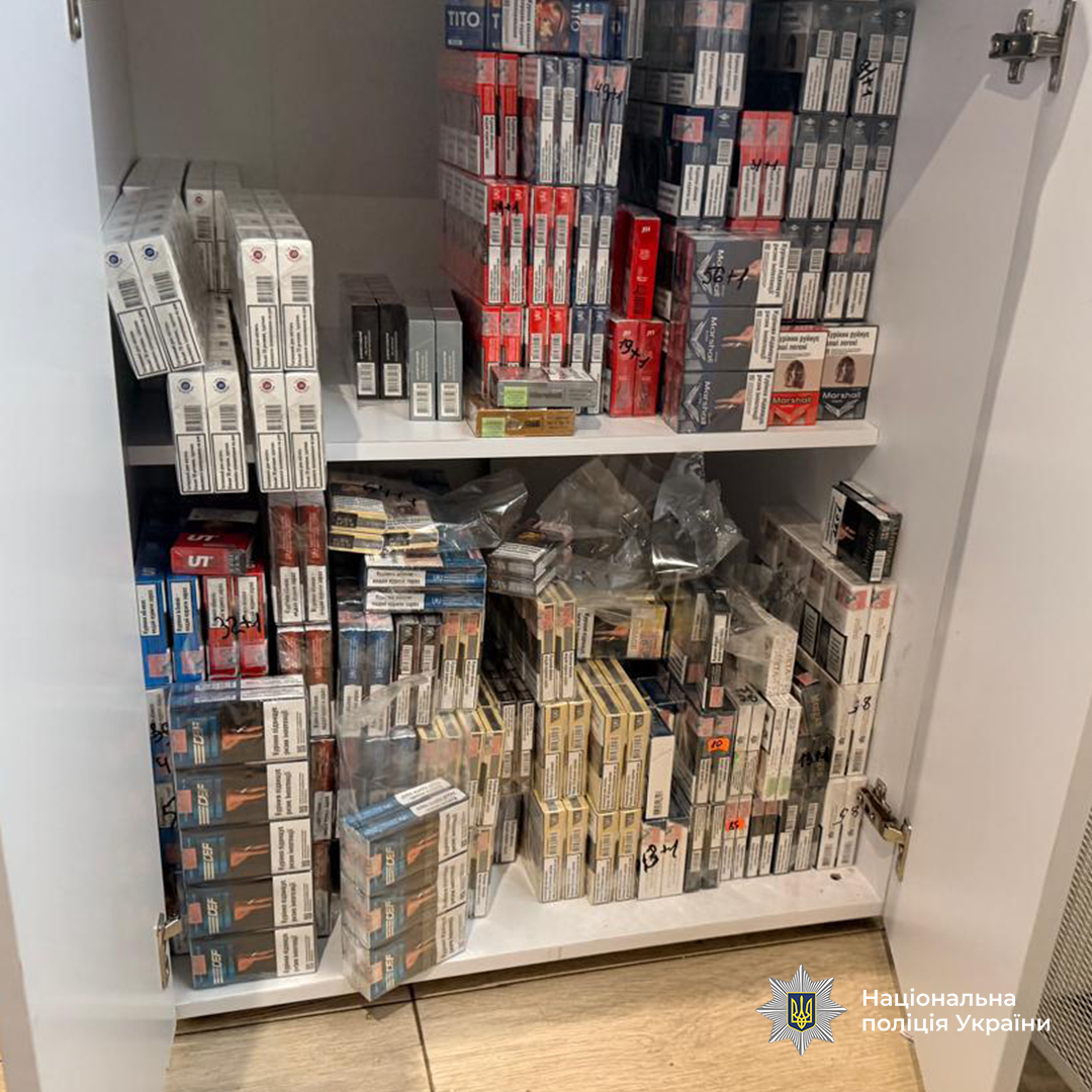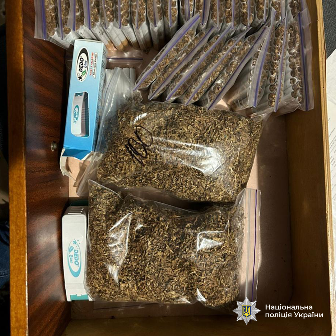 Зокрема, близько 340 тисяч пачок сигарет, 25 мішків з тютюном, понад 600 тисяч сигаретних "гільз", 4 пристрої для виготовлення сигарет, майже 2 тисяч ємкостей з рідинами для електронних сигарет, 5 тисяч літрів рідини, схожої на алкоголь, мобільні телефони та комп’ютерну техніку, 5 транспортних засобів, чорнові записи щодо протиправної діяльності та грошові кошти у різних валютах загальною сумою понад 6,2 мільйона гривень.