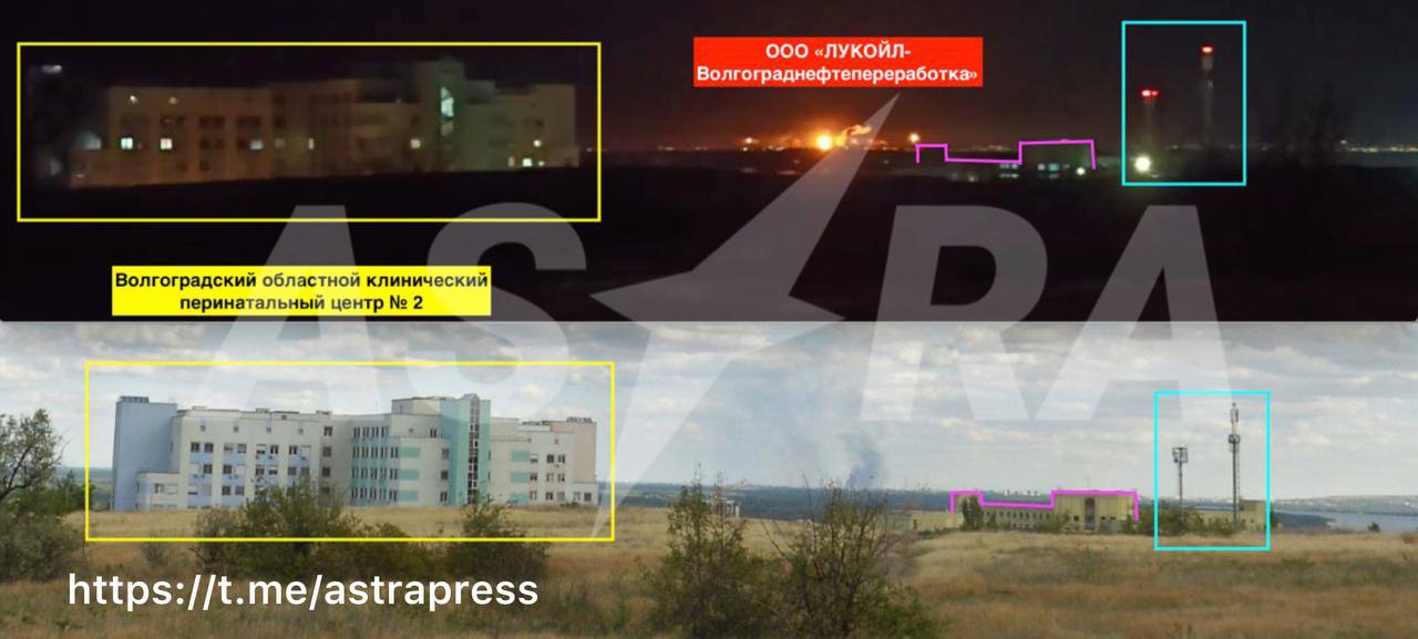 Згідно з аналізом ASTRA кадрів від очевидців, у Красноармійському районі Волгограда уражено та загорівся завод "Лукойл-Волгограднафтопереробка".
