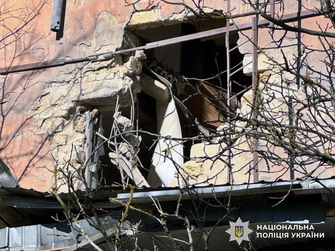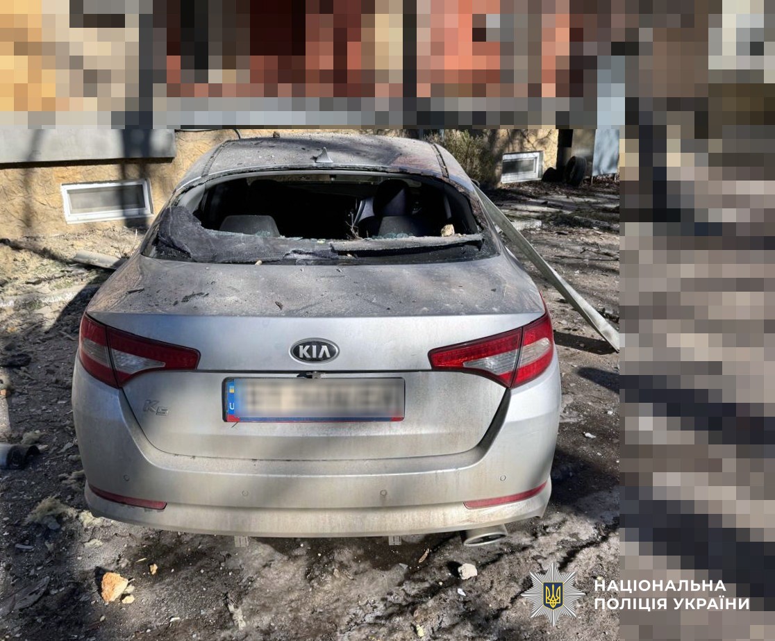 Також вранці російські військові здійснили скид із безпілотника поруч зі службовим автомобілем Управління поліції охорони. Внаслідок удару травмувалися двоє поліцейських віком 31 та 27 років. В обох мінно-вибухові травми, уламкові поранення обличчя й кінцівок.