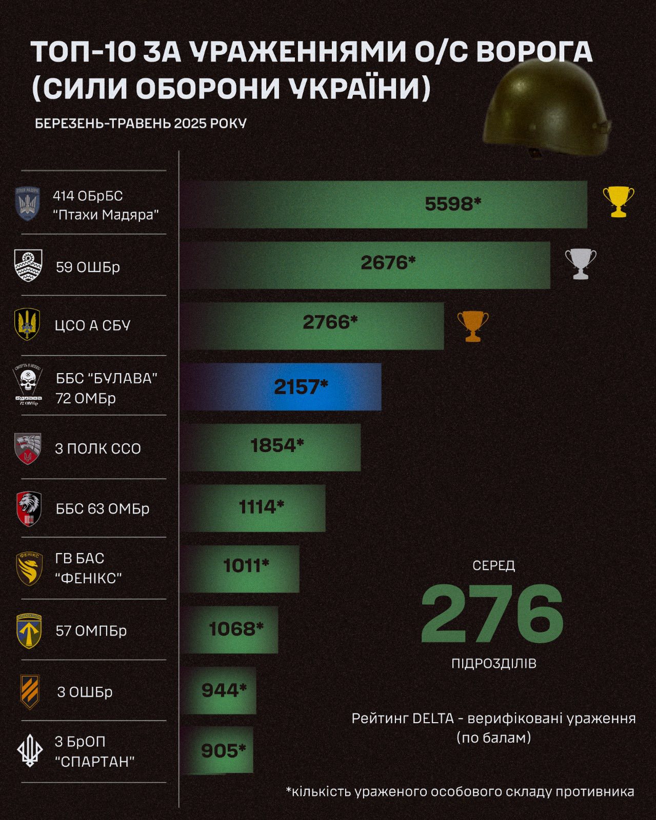 "Знищення особового складу противника є пріоритетом для кожного підрозділу української армії. У 2025 році наша команда ліквідувала 3507 окупантів, що дозволило посісти: