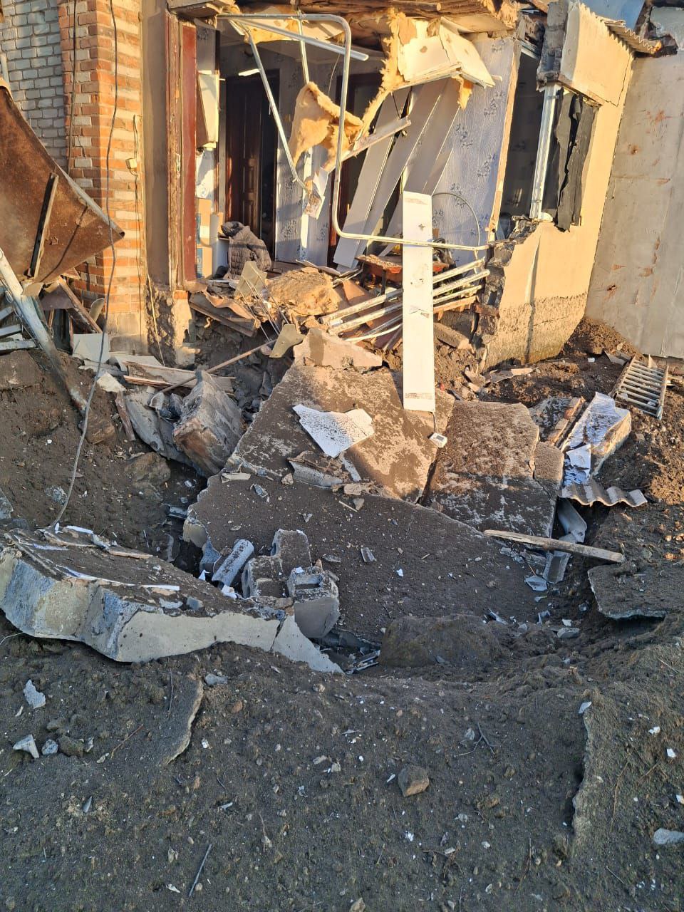 Внаслідок дронових атак у Черкаському пошкоджено 2 приватних будинки, у Шабельківці – один будинок, у Староварварівці – три приватних оселі і 2 автомобілі, в Очеретиному – АЗС.