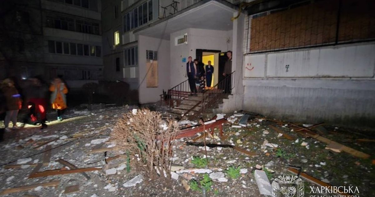 "У Харкові двоє людей зазнали поранень, ще 16 мали гостру реакцію на стрес; у с. Оскіл зазнали поранень 90-річна і 67-річна жінки та 19-річний чоловік; у с. Підвисоке Борівської громади постраждали 57-річний чоловік і 53-річна жінка; у с. Вишневе Близнюківської громади зазнала гострої реакції на стрес 32-річна жінка.