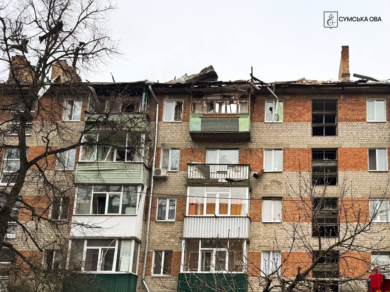 Російський БпЛА влучив у житловий будинок у Сумах: виникла пожежа. ФОТО