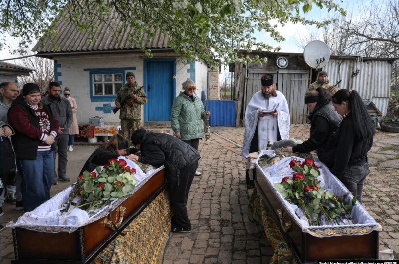 Братів поховали у спільній могилі. На церемонію прощання прийшли сотні мешканців громади.