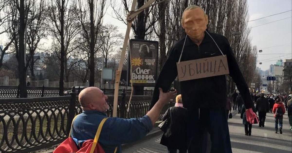 Після цього учасники мітингу сформували колону і вирушили в напрямку посольства по вулиці Хрещатик і бульвару Тараса Шевченка. Колона рухається проїжджою частиною, перекривши таким чином автомобільний рух на бульварі Шевченка, в бік проспекту Перемоги.