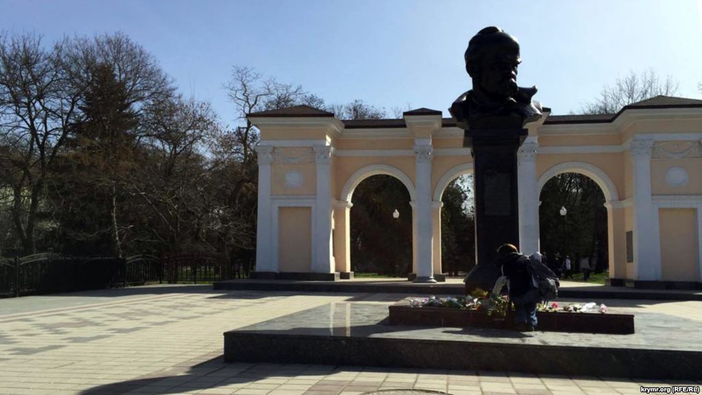 Мешканці окупованого Сімферополя несуть квіти до пам'ятника Шевченку.. ФОТО