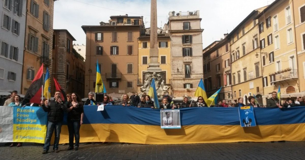У неділю в столиці Італії півсотні активістів української громади провели акцію з вимогою звільнити Надію Савченко та інших українців, утримуваних у Російській Федерації.