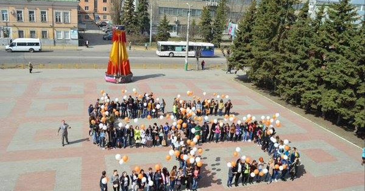 У День космонавтики учасники флешмобу в Пензі вишикувалися в число "55", яке означає 55-ту річницю польоту Юрія Гагаріна в космос.