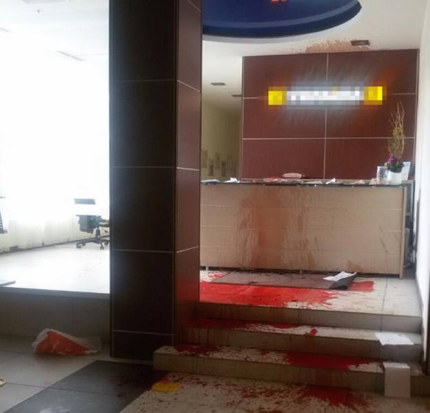 Невідомі облили фарбою приймальню телеканалу "Україна". Міліція відкрила кримінальну справу. ФОТОрепортаж