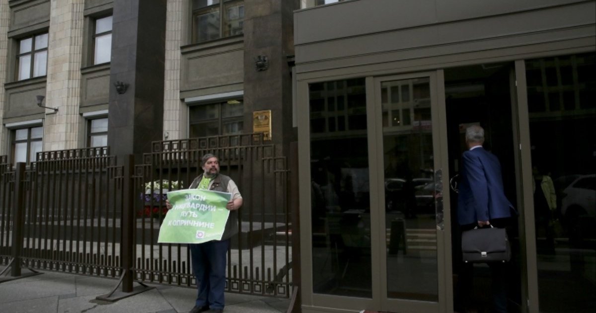 Одиночні пікети проти путінської Росгвардії пройшли біля Держдуми. ФОТО