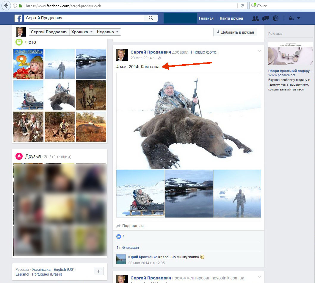 Як повідомляє Цензор.НЕТ, про це на своїй сторінці у Facebook написав журналіст Станіслав Речинський із посиланням на ОРД."Одеський клан Продаєвичів. В одного брата донедавна професією було масштабне розкрадання і пособництво в розкраданні як голова господарського суду Одеської області. У другого хобі - вбивство тварин на всіх континентах. Чесно кажучи, не знаю, хто з них більш огидний. Зебру вбив, бегемота ... Не заради їжі або захисту. Просто так. І до церкви, напевно, ходить ", - написав він.