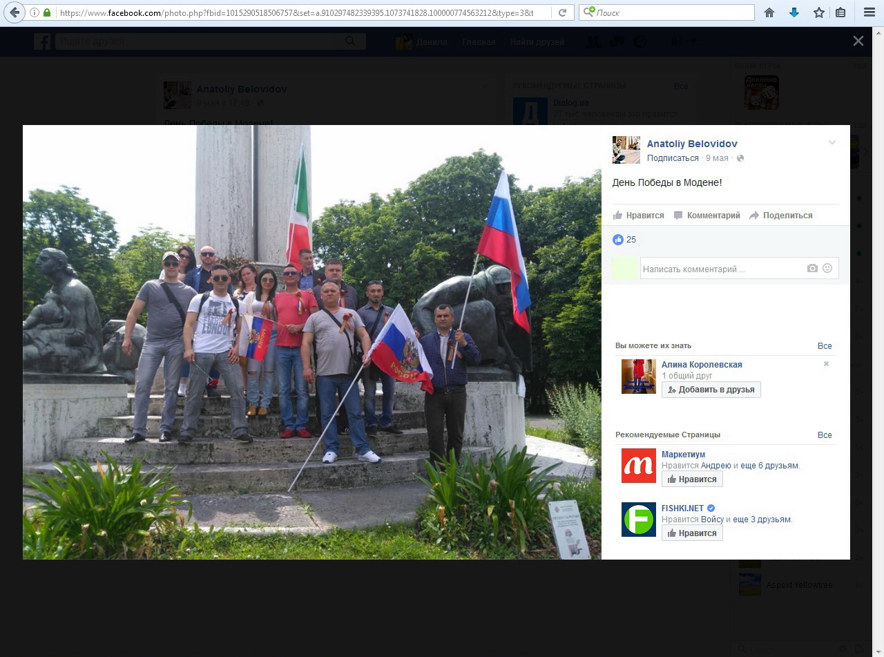 Сторінка Продаєвича у Facebook повною мірою показує ставлення бізнесмена до Росії. Один з його друзів, який проживає в Італії, розмістив свої фото святкування Дня Перемоги.