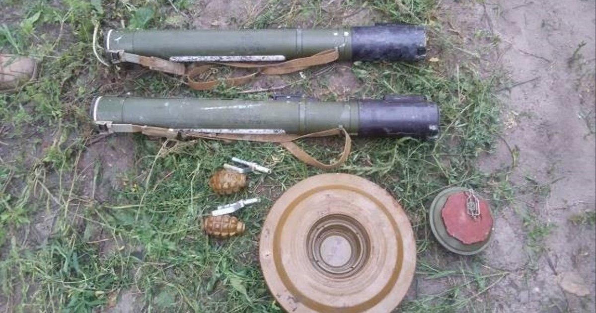 Згідно з повідомленням, правоохоронці вилучили зі схованки, обладнаної в лісовому масиві на березі річки Сіверський Донець, два гранатомети РПГ-22 і танкову міну з годинниковим детонатором.