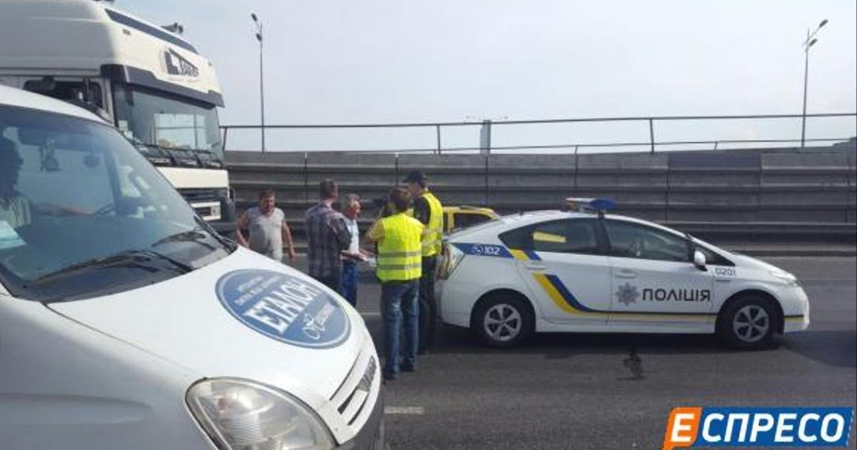 Як інформує Цензор.НЕТ, про це повідомляє Еспресо.ТV.Фура рухалася на третій смузі по Південному мосту, а авто Омельченка - на другій. Дві машини одночасно вирішили перелаштуватися і притерлися.