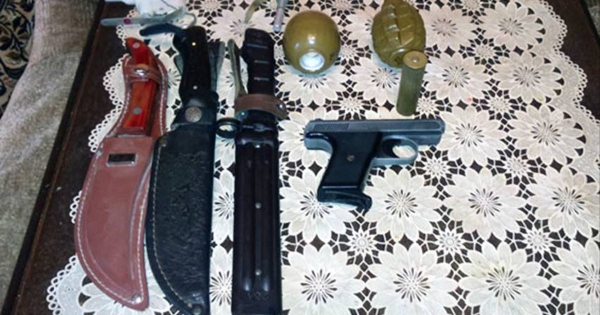 Під час обшуку у квартирі правопорушника виявлено 2 гранати Ф-1 та РГН, 3 запали до гранат, 3 ножа та газовий пістолет.