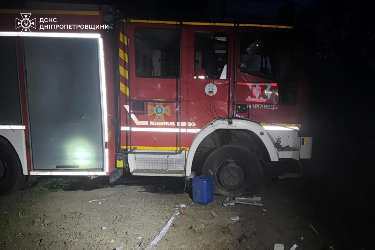 У Марганці на Дніпропетровщині російські війська здійснили цілеспрямовану атаку дронами по підрозділу рятувальників, пошкодивши депо та спеціальну техніку.