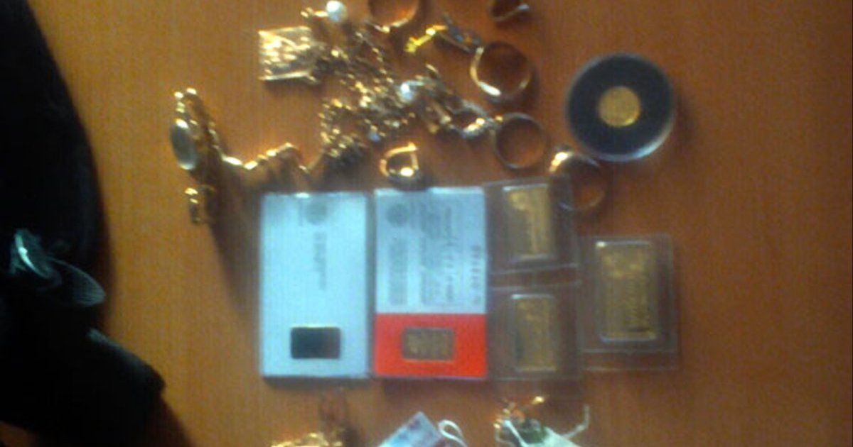 Як повідомляє Цензор.НЕТ із посиланням на Головне управління Нацполіції в Донецькій області, під час несення служби на блокпості поліцейські зупинили автівку, яка, не перший погляд, не викликала підозри. Але при огляді правоохоронці виявили цілий скарб - 31-річний мешканець Мангуша перевозив жіночі золоті каблучки, сережки, ланцюжки, брошку, ладанку, 4 злитки золота вагою 2,5 грамів та один 10-грамовий злиток. Окрім того, дорогою до спеціального модулю, який розташований на блокпості для перевірки громадян, чоловік намагався порвати логотип так званої "ДНР", який мав при собі.Усі коштовності були викрадені з квартири мешканки Мангуша. І їхня справжня власниця їх розшукує та звернулася до поліції із заявою про крадіжку. Сума викрадених золотих виробів становить понад 80 тисяч гривень. Окрім того, з житла жінки разом із золотом були викрадено і тисячу доларів США.