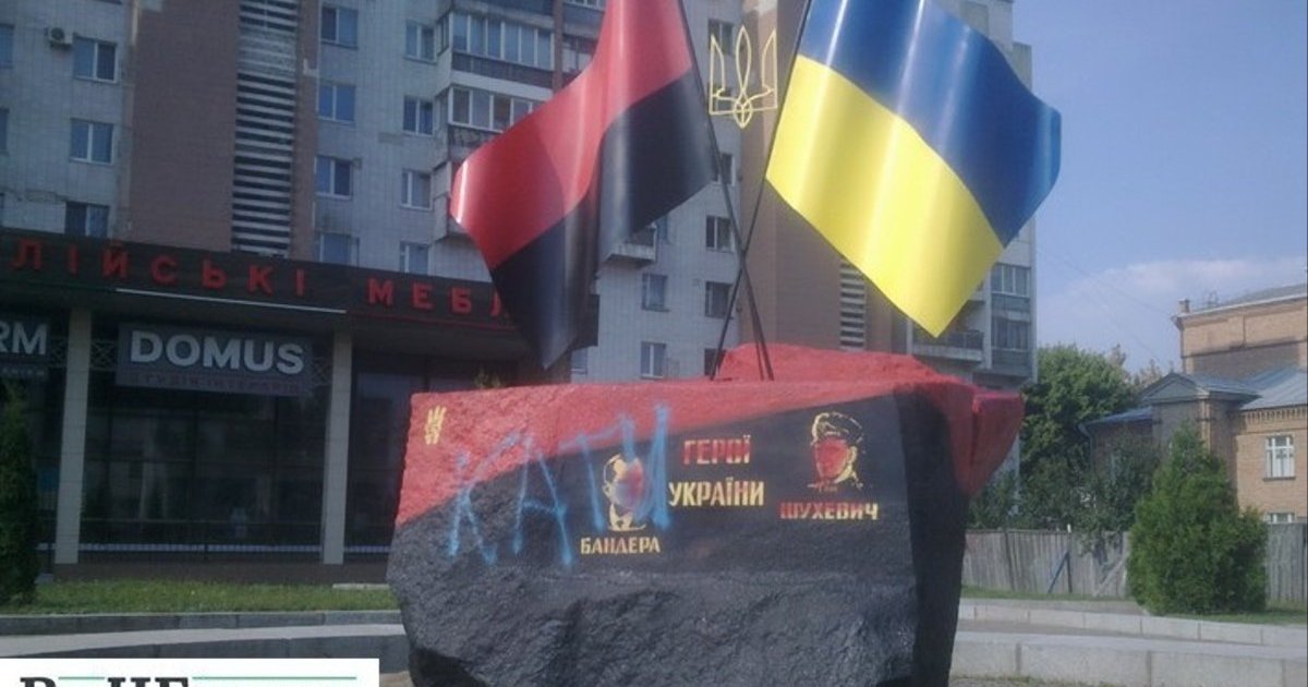 У Черкасах вандали знову сплюндрували пам'ятник Степану Бандері і Роману Шухевичу.