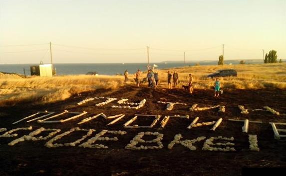За інформацією кримських сайтів, жителі розраховували на те, що Путін буде здійснювати обліт околиць на вертольоті, вони виклали звернення кам'яними літерами розміром у людський зріст. Вони скористалися недавньою пожежею, яка випалила велику територію неподалік, і виклали на чорній землі білими каменями заклик до президента Росії.
