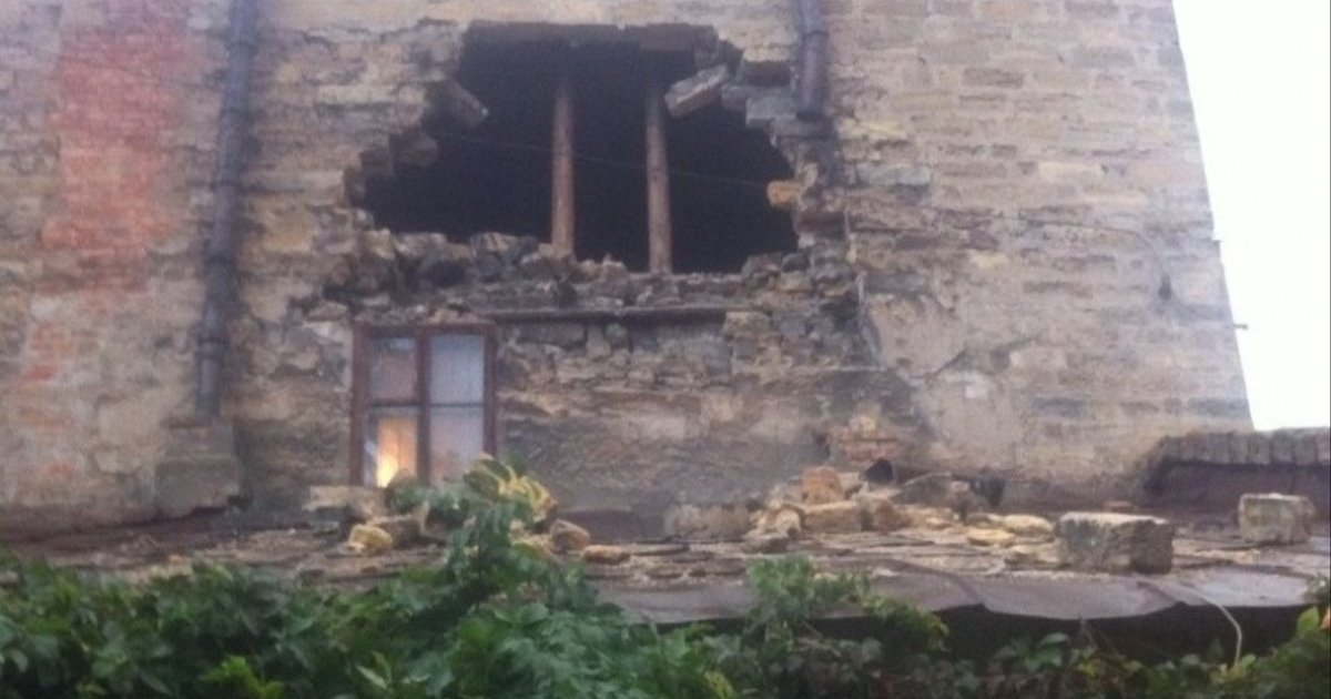 Як повідомляє Цензор.НЕТ із посиланням на "Думську", під час зливи, що пройшла нещодавно, в стіні будинку №15 по вулиці Заславського утворилася величезна діра.