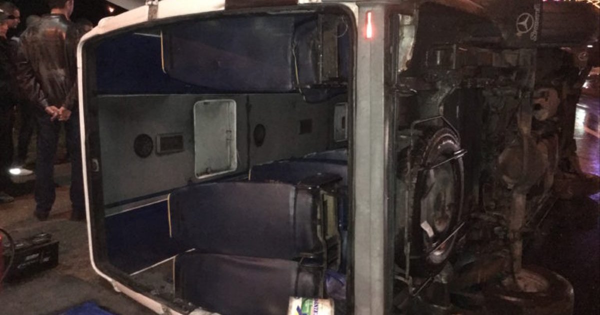 Люди були змушені вибиратися через люк маршрутки. Чотирьох пасажирів госпіталізували до лікарні, ще двоє зазнали легких забоїв голови.