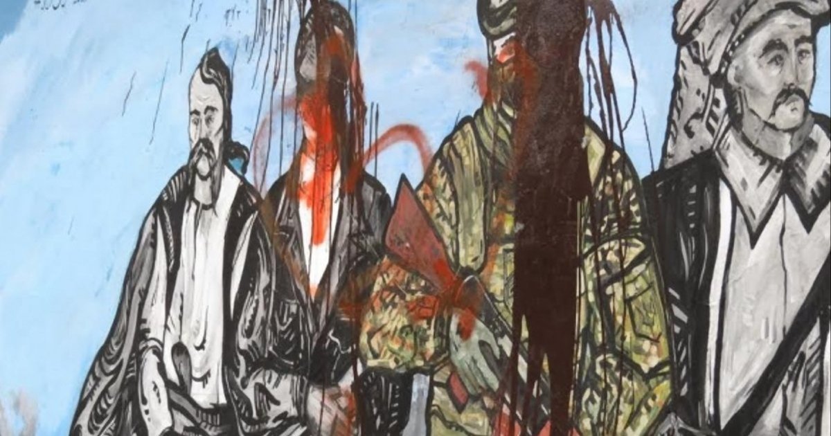 "Цього разу поверх фарби, вилитої на образи воїнів УПА і "Азова" після відновлення настінної картини українськими активістами проекту "БУР", панно розмалювали червоною фарбою", - зазначив очевидець.