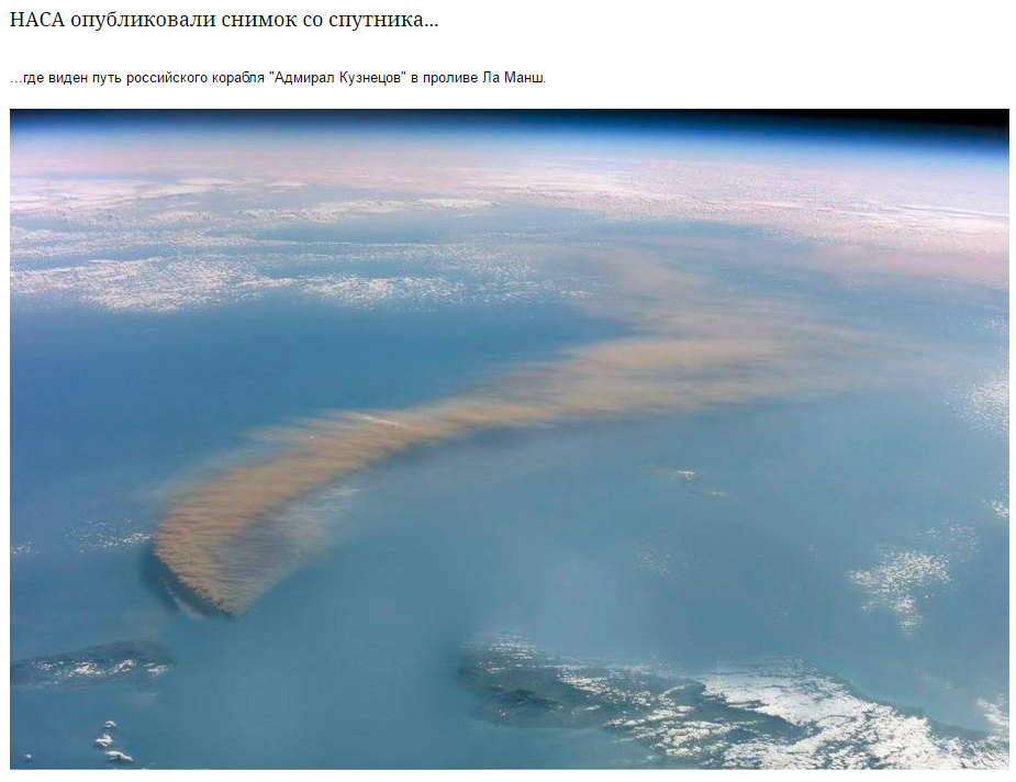 Флотилія російських кораблів 21 жовтня увійшла в Ла-Манш. На чолі флотилії - крейсер "Адмірал Кузнєцов", який задимів усю протоку. Ця подія в мережі викликала масу фотожаб, у яких висміюють крейсер.