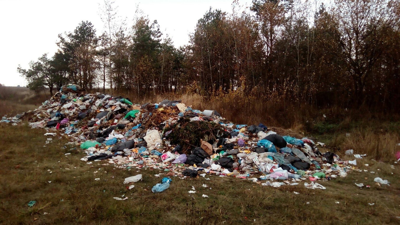 Біля автотраси міжнародного значення Київ - Ковель - Ягодин у Житомирській області невідомі вивантажили кілька тонн сміття - імовірно зі Львова.