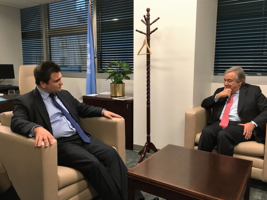 Міністр закордонних справ України Павло Клімкін і новообраний генеральний секретар ООН Антоніу Гутерреш обговорили в штаб-квартирі Організації перспективи подальшої співпраці.